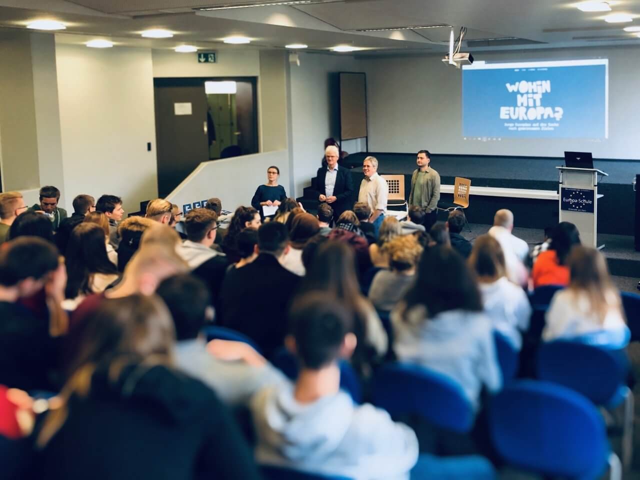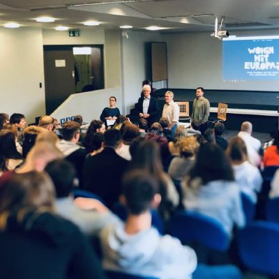 Die Lesung ist sowohl bei den Lehrkräften als auch bei den Schülern sehr gut angekommen. Es wurden zwei kürzere Textpassagen vorgelesen und daraufhin Fragen angeschlossen, die sich zum einen auf die Hoffnungen sowie Erwartungen bzgl. Europa seitens der Schüler\*Innen bezogen und zum anderen auf die Bedeutung des Nationalstaats für die Zielgruppe. Im Anschluss an die Diskussion der Leseteile schloss sich eine dynamische Diskussion zum Ende der Lesung an. In diesem Teil rückte vermehrt die politische Komponente Europas in den Vordergrund, was von unseren Schüler*Innen, wie es sich auch in der Nachbesprechung der Lesung herausstellte, sehr positiv und konstruktiv angenommen wurde. Die Lesung hat unseren Schüler*Innen einen aktiven Raum geboten, um sich intensiver mit dem Thema "Europa" auseinanderzusetzen und sie lieferte gute Denkanstöße und Diskussionsanreize zu diesem Thema.