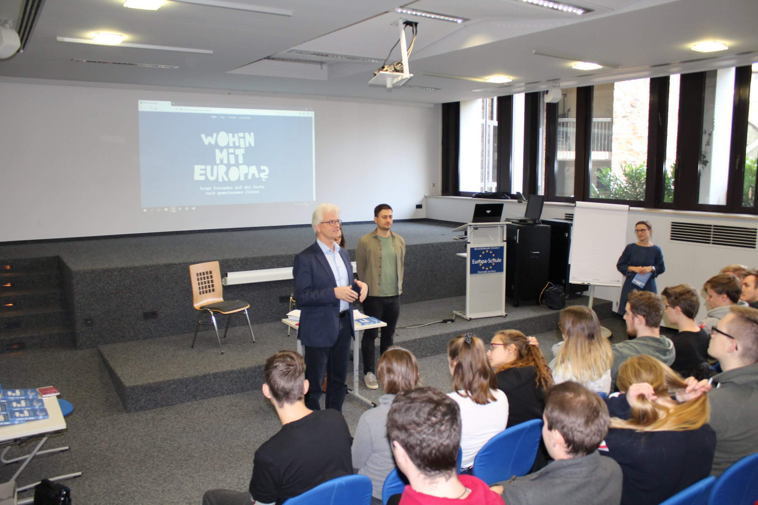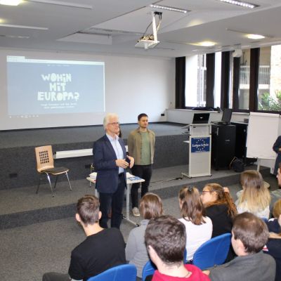 Am 22.10.2019 hat Daniel Eichenberg zusammen mit der Lektorin Maren Keller das Buch "Wohin mit Europa" an unserer Schule, der BBS 1 Osterode, dem 12. Jahrgang des beruflichen Gymnasiums und der Fachoberschule vorgestellt.
