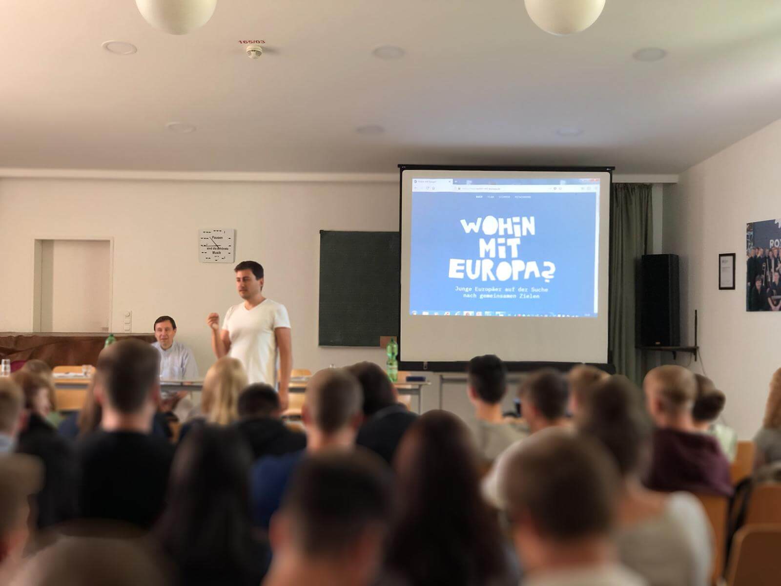 Hier hat uns das Projekt „Wohin mit Europa?“ sehr geholfen, dessen Autorinnen und Autoren ein gleichnamiges Buch im Selbstverlag herausgegeben haben und die am 27.06.2019 im Ratsgymnasium Stadthagen für Europa warben. Man muss nicht das ganze Buch mit den Schülerinnen und Schülern gelesen haben, um von der Veranstaltung zu profitieren. Man muss auch nicht jede im Buch vertretene Auffassung uneingeschränkt teilen. Es reicht, sich anstecken zu lassen von der jugendlichen Energie, mit der die Autorinnen und Autoren, mehrheitlich Studierende am Ende ihrer Ausbildung, die Vorzüge Europas genießen und leben. Europa ist für sie ein Lebensgefühl, eine Chance, die sie einerseits selbstverständlich nutzen und andererseits – auch angesichts europakritischer Strömungen – nicht einfach als selbstverständlich nehmen. Die Referentinnen und Referenten waren unseren Schülerinnen und Schülern nah genug, um als Identifikationsfiguren dienen zu können, und zugleich fremd genug, um sie zum Nachdenken anzuregen. Sie haben Europa verinnerlicht und konnten genau diese Einstellung unserer Schülerschaft nahebringen. Ein echter Gewinn!