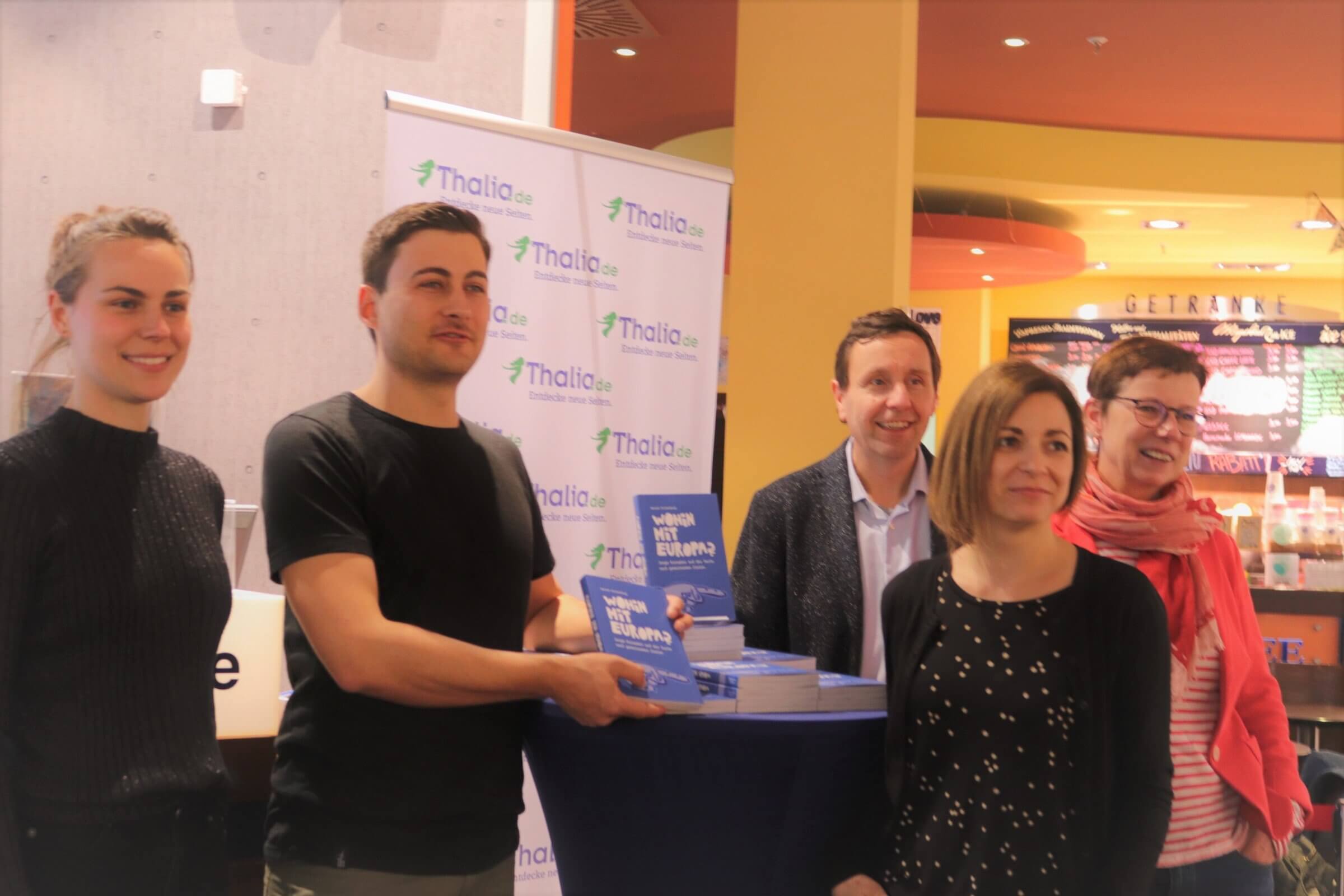 Die erste Buchvorstellung und Lesung von ‘Wohin mit Europa?’ war ein voller Erfolg – und hat riesigen Spaß gemacht. Nach einem kurzen Ausflug zur Entstehungsgeschichte und zum Inhalt des Buches haben Maren, Markus und Daniel gelesen. In vielseitigen Gesprächen mit dem Publikum wurden insbesondere Themen, wie die sich verändernde Funktion von Nationalstaaten oder die Bedeutung der kulturellen Orientierung lebendig ausgetauscht. Danke nochmals an unsere EU-Abgeordnete Martina Werner und ans Thalia in Kassel für die Organisation der Veranstaltung. Und natürlich einen großen Dank allen Gästen.